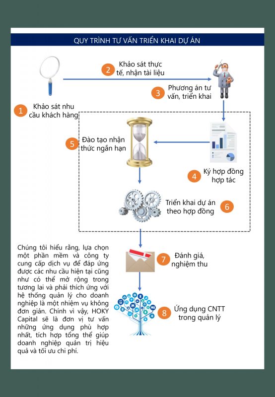 HOKY với vai trò là công ty tư vấn phát triển tổ chức chuyên nghiệp, chúng tôi cung cấp các dịch vụ chuyên sâu theo đặc điểm từng khách hàng qua các phương thức hiệu quả cao gồm: tư vấn và triển khai đồng hành.